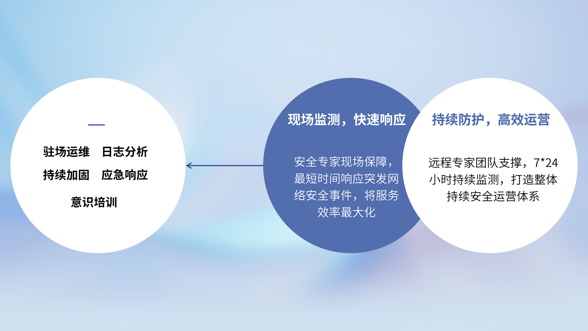 7X24小时持续监测安全事件,保持安全策略有效性,降低资产脆弱性风险,,,精准拦截黑客攻击,,,,减少被黑客利用的机会,,,,第一时间遏制,,,,降低损失。。。。